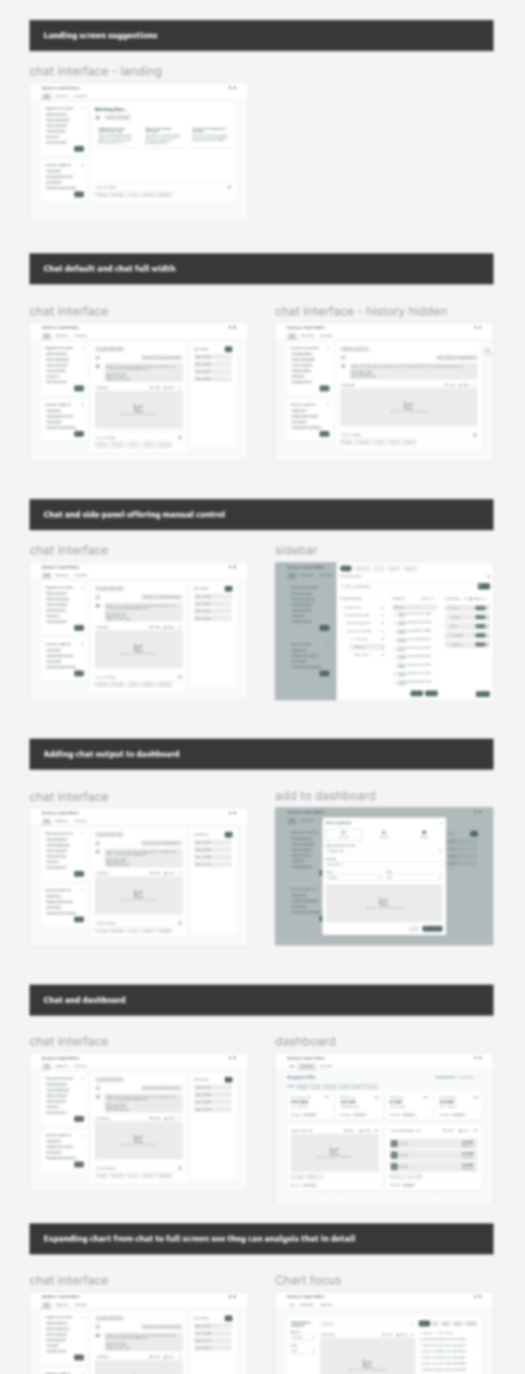 Selected working artefacts from the project. Blurred intentionally to protect business context, shown to demonstrate the depth and shape of the work, not as polished deliverables.